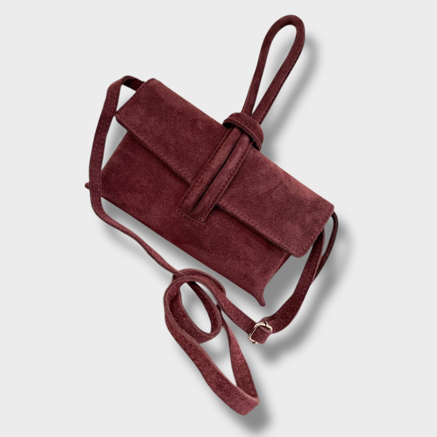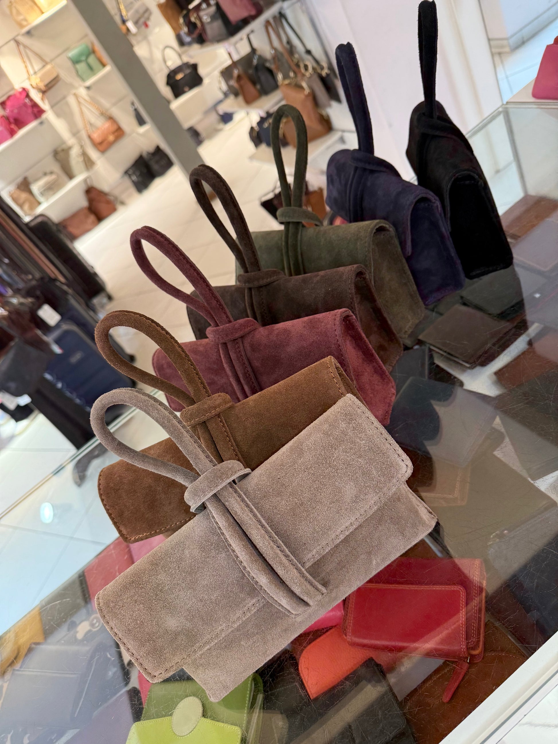 E’ realizzata in pelle scamosciata. Made in Italy.