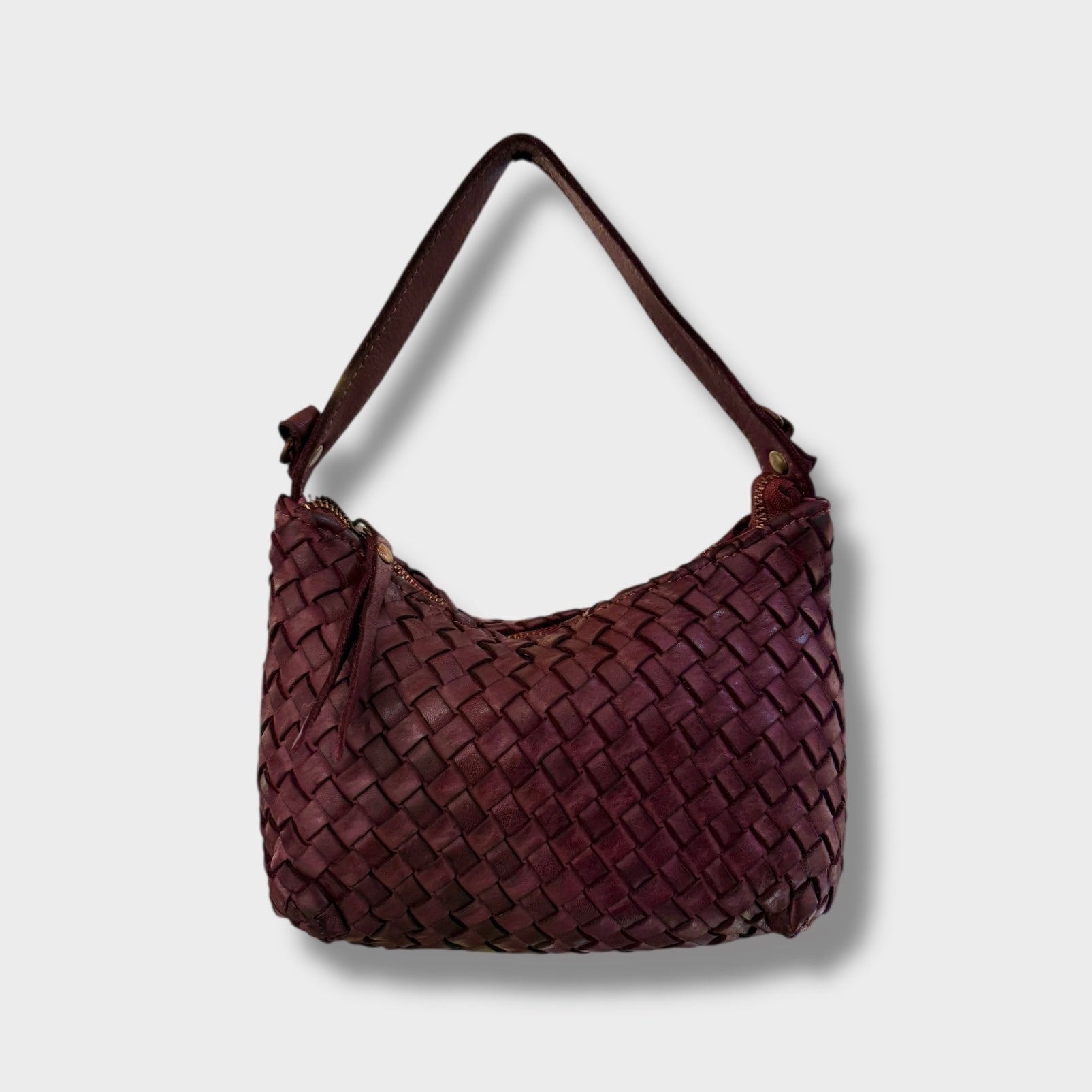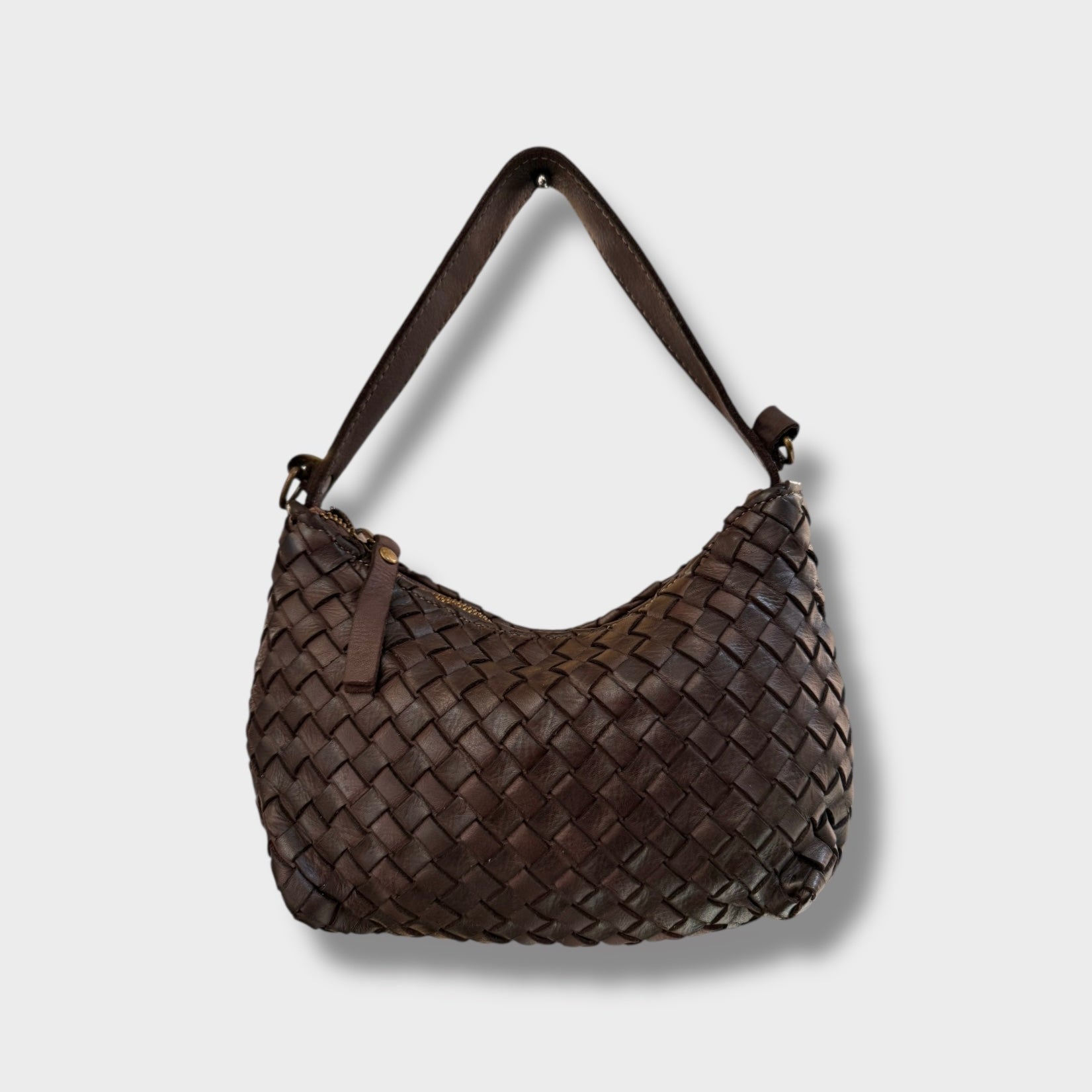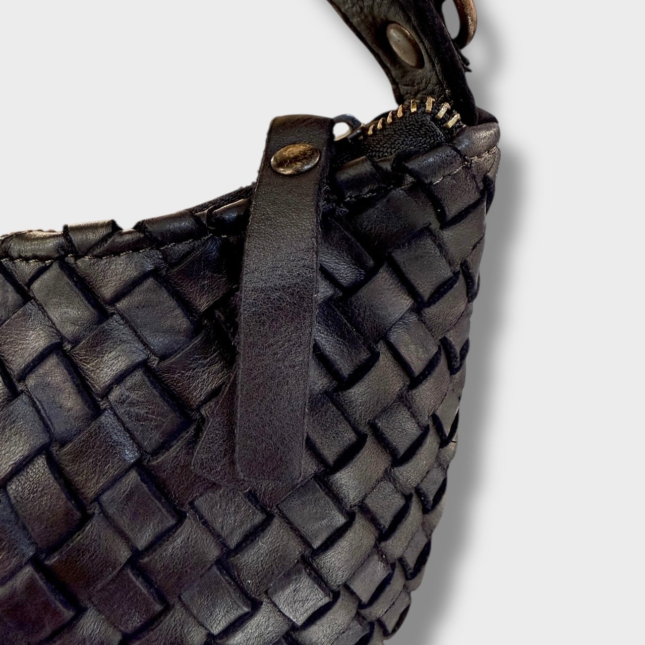 Particolare borsa intrecciata, realizzata in pelle sauvage.