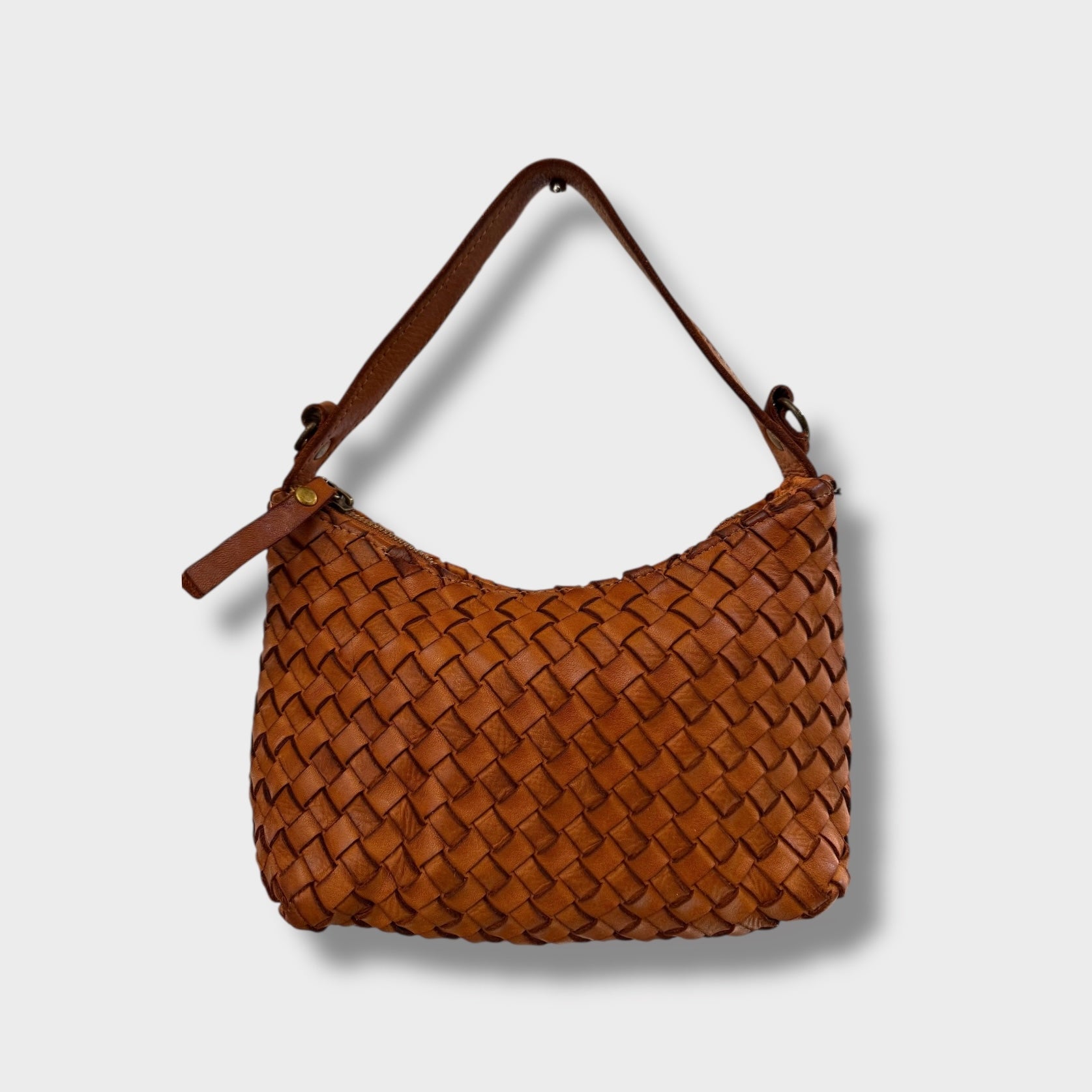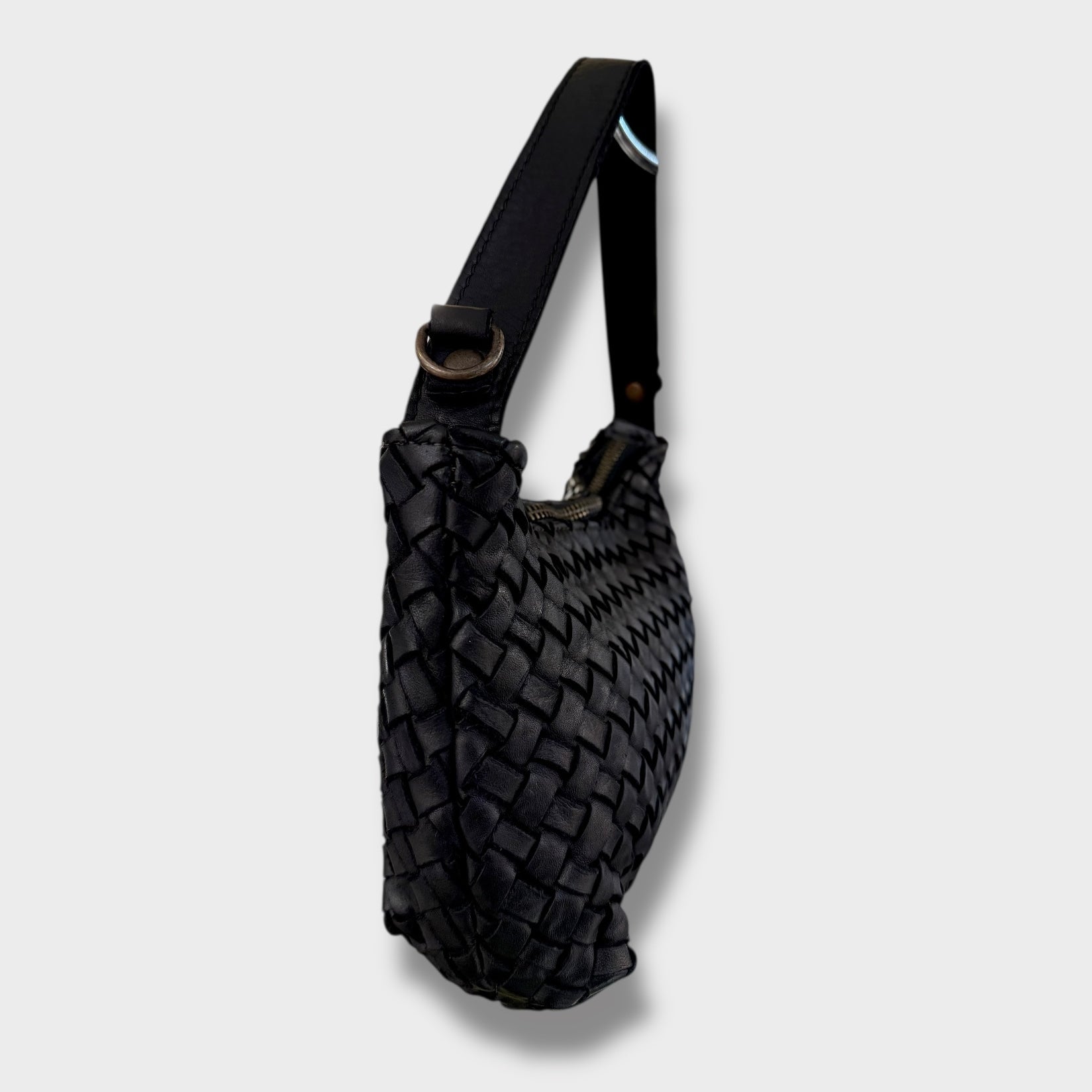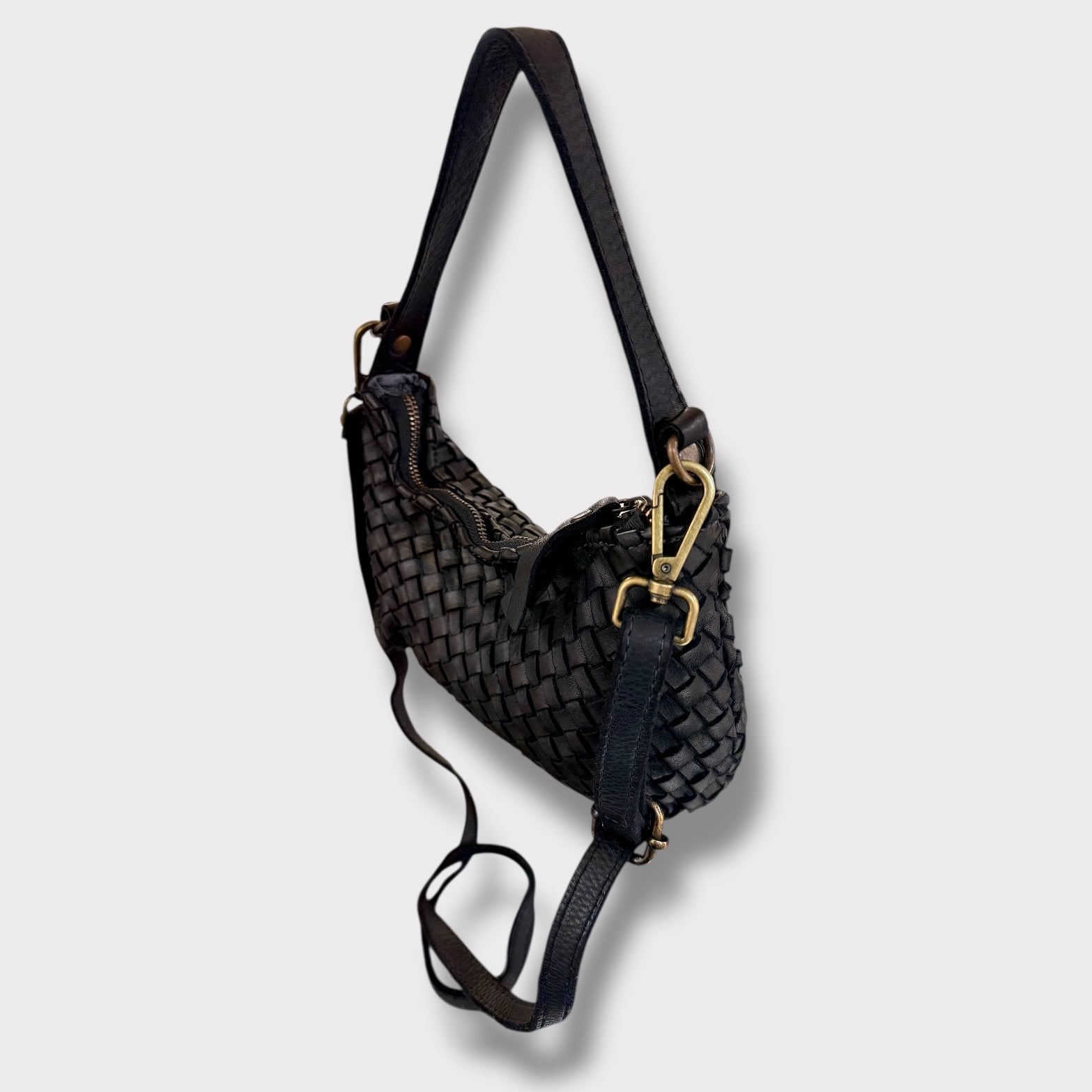 Particolare borsa intrecciata, realizzata in pelle sauvage.