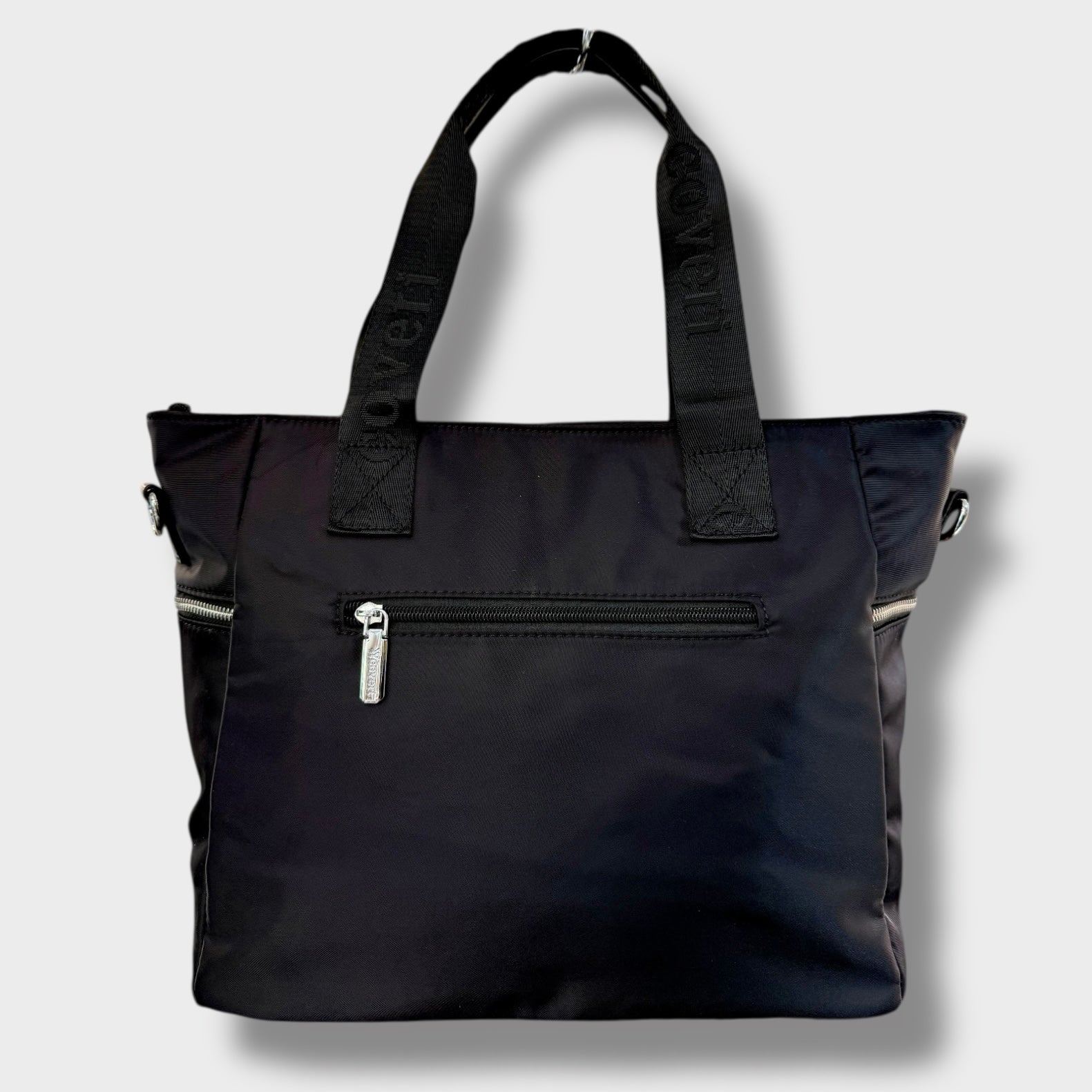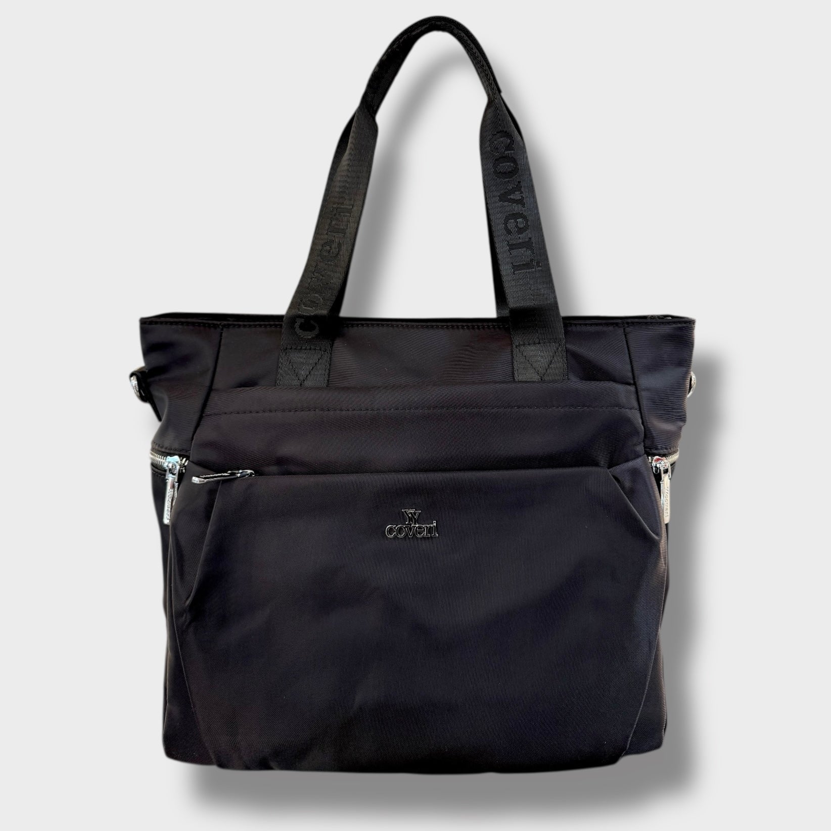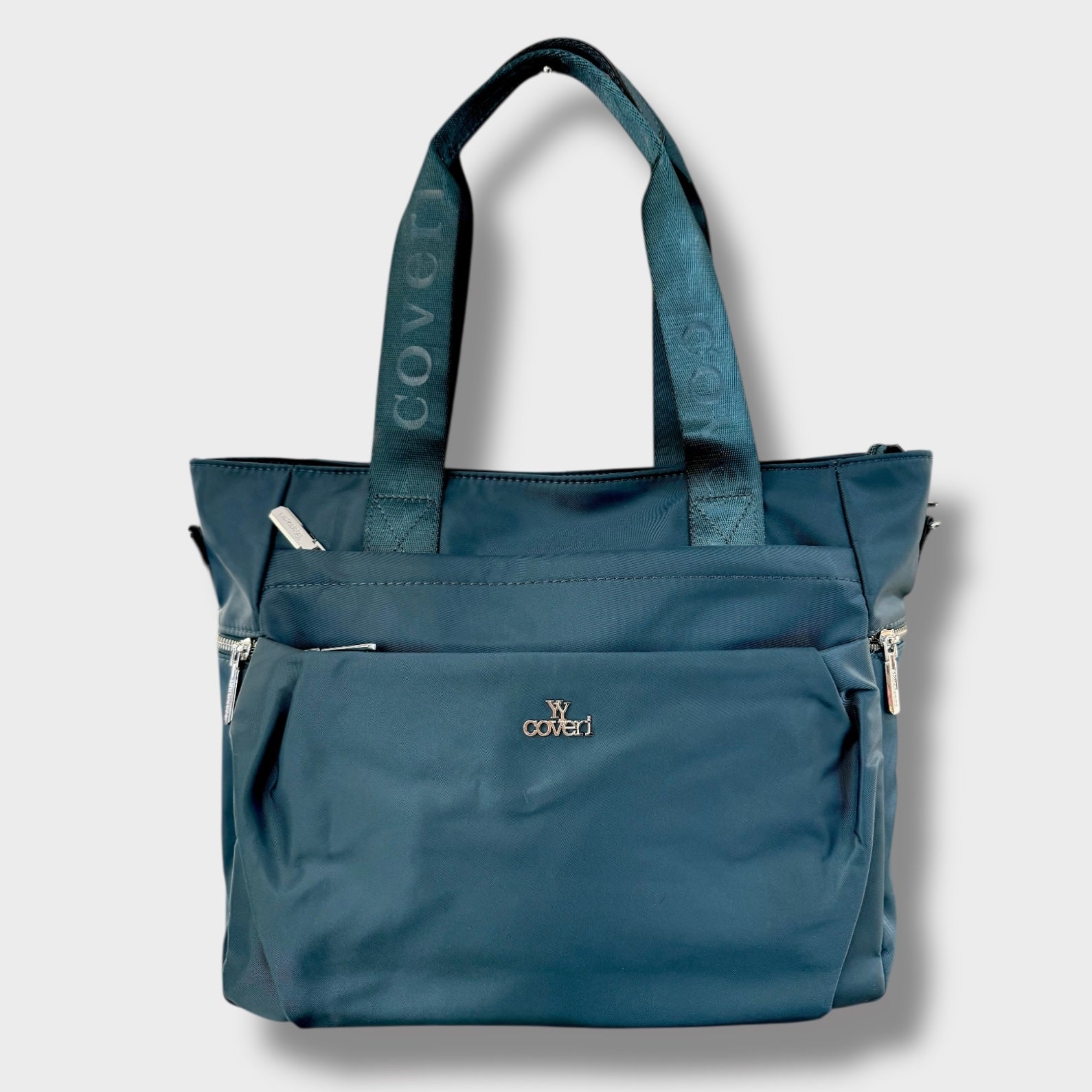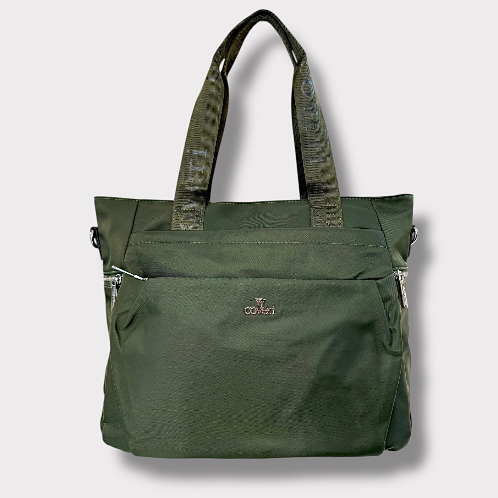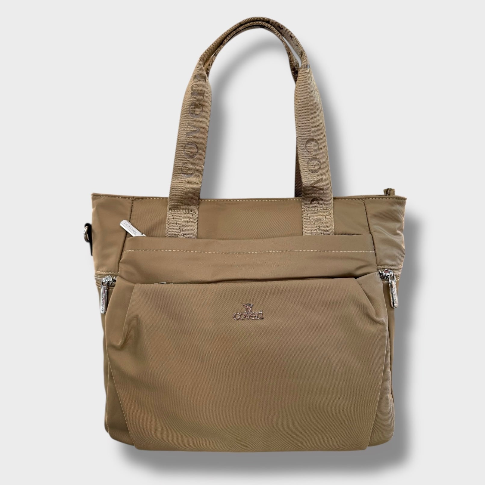 Borsa in tessuto multi tasche con due manici e completa di tracolla.