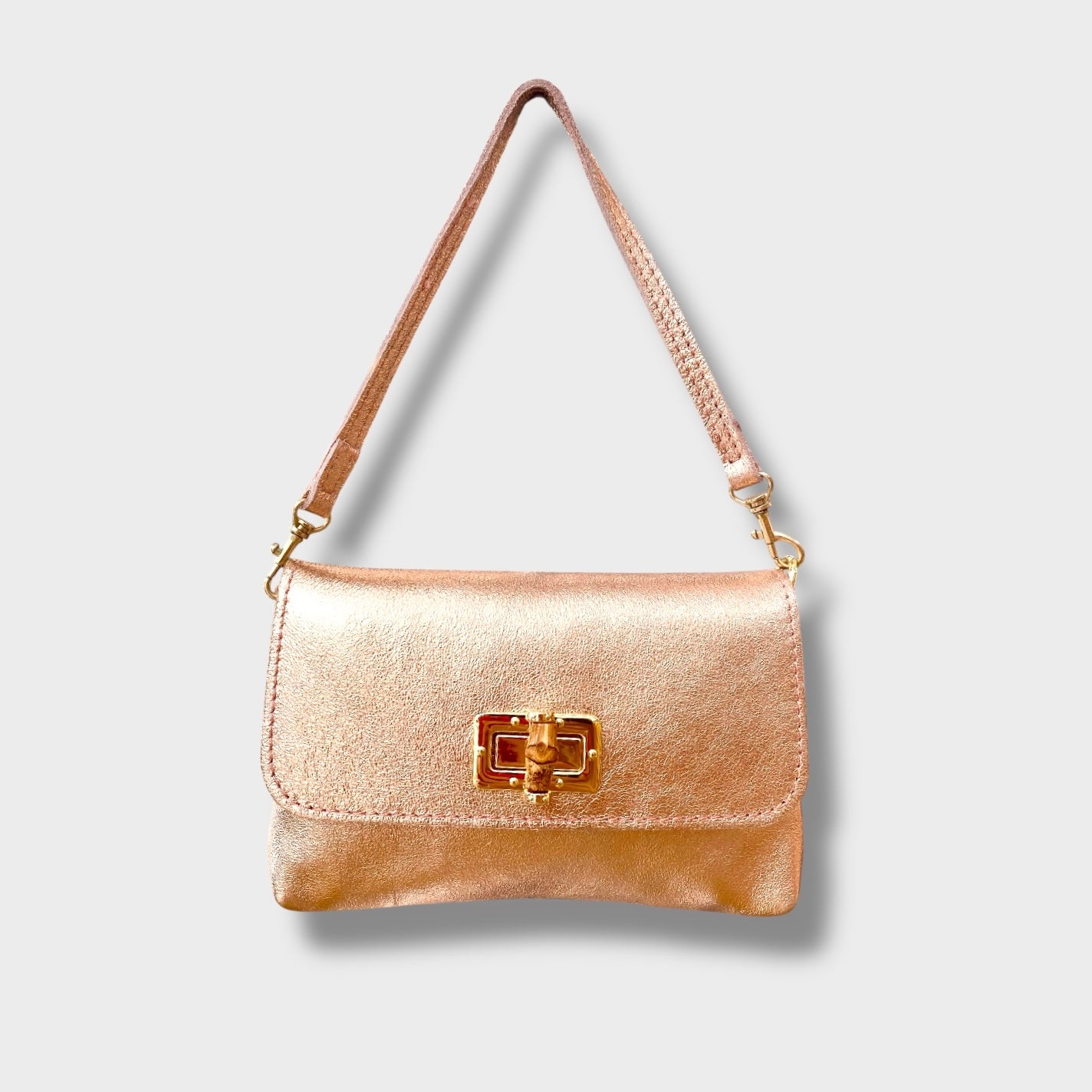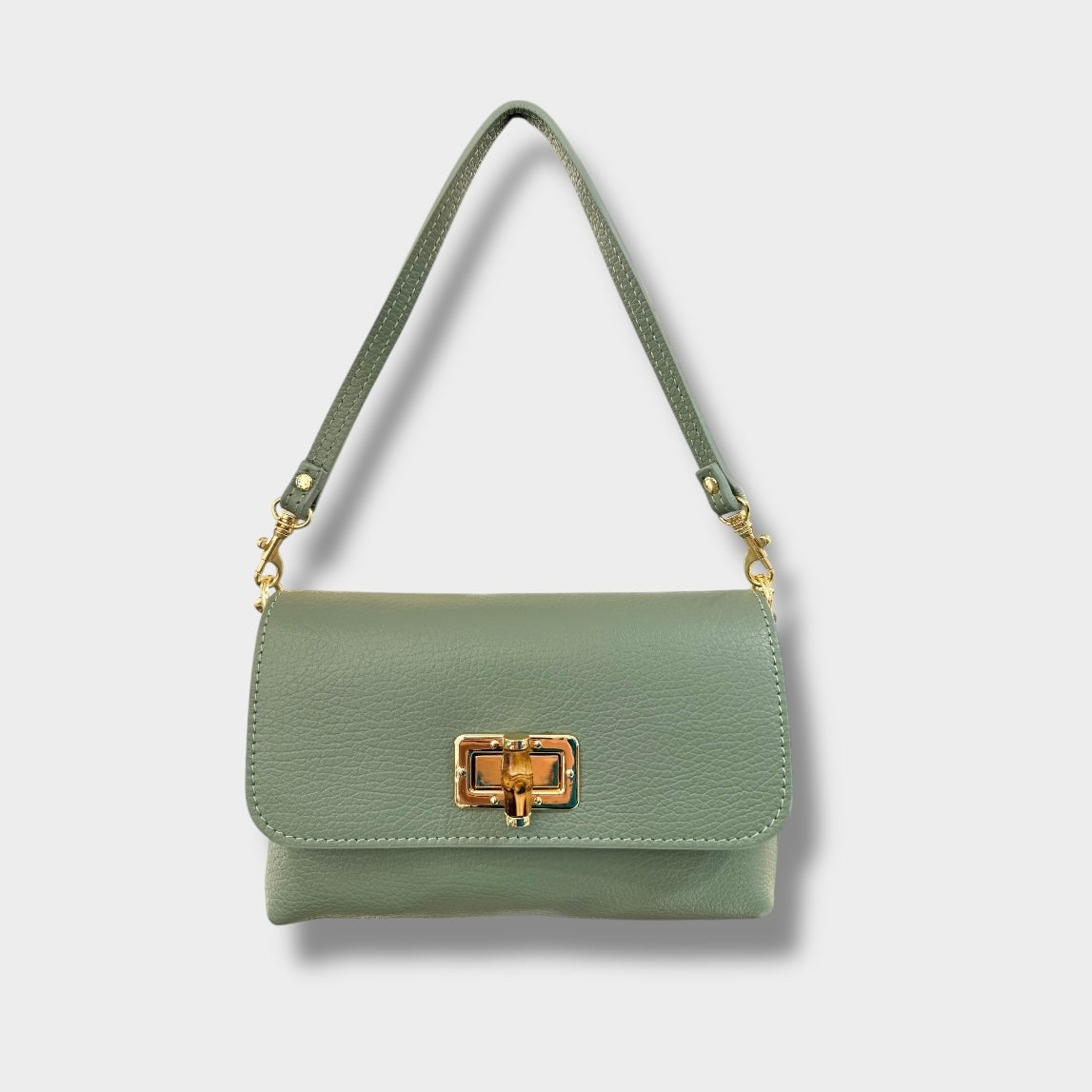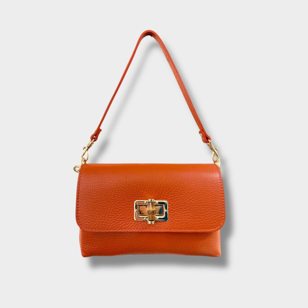 Piccola borsetta realizzata in Vera pelle, stampa dollaro. Chiusura in bambù.