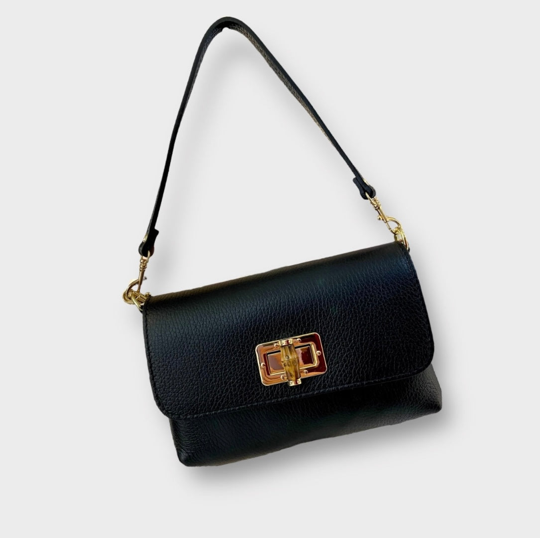 E’ completa di tracolla in catena. Rifiniture metalliche dorate.