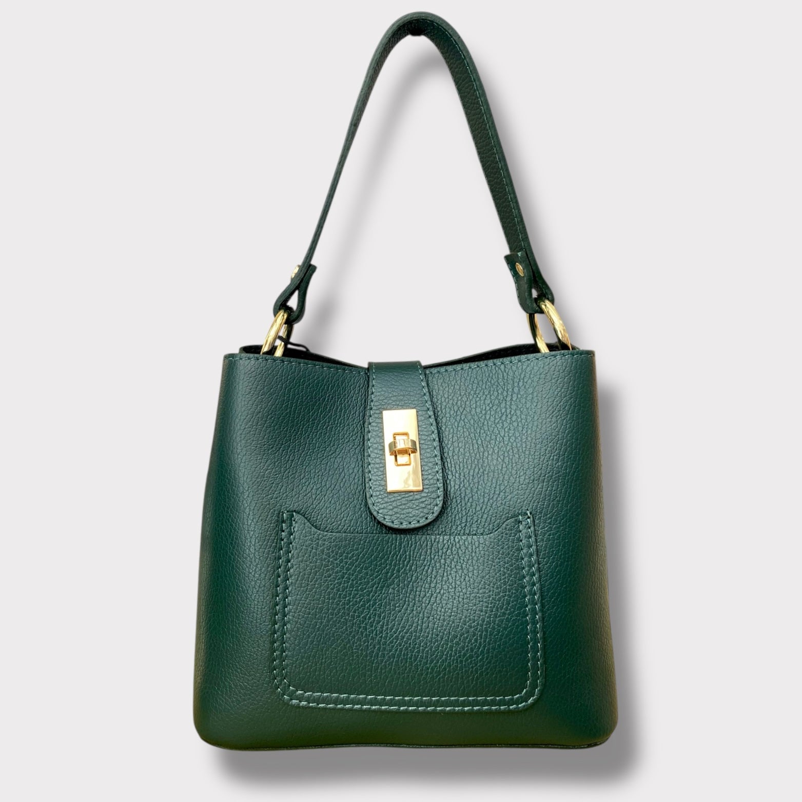 Borsa di medie dimensioni, realizzata in pelle, stampa dollaro. Made in Italy.