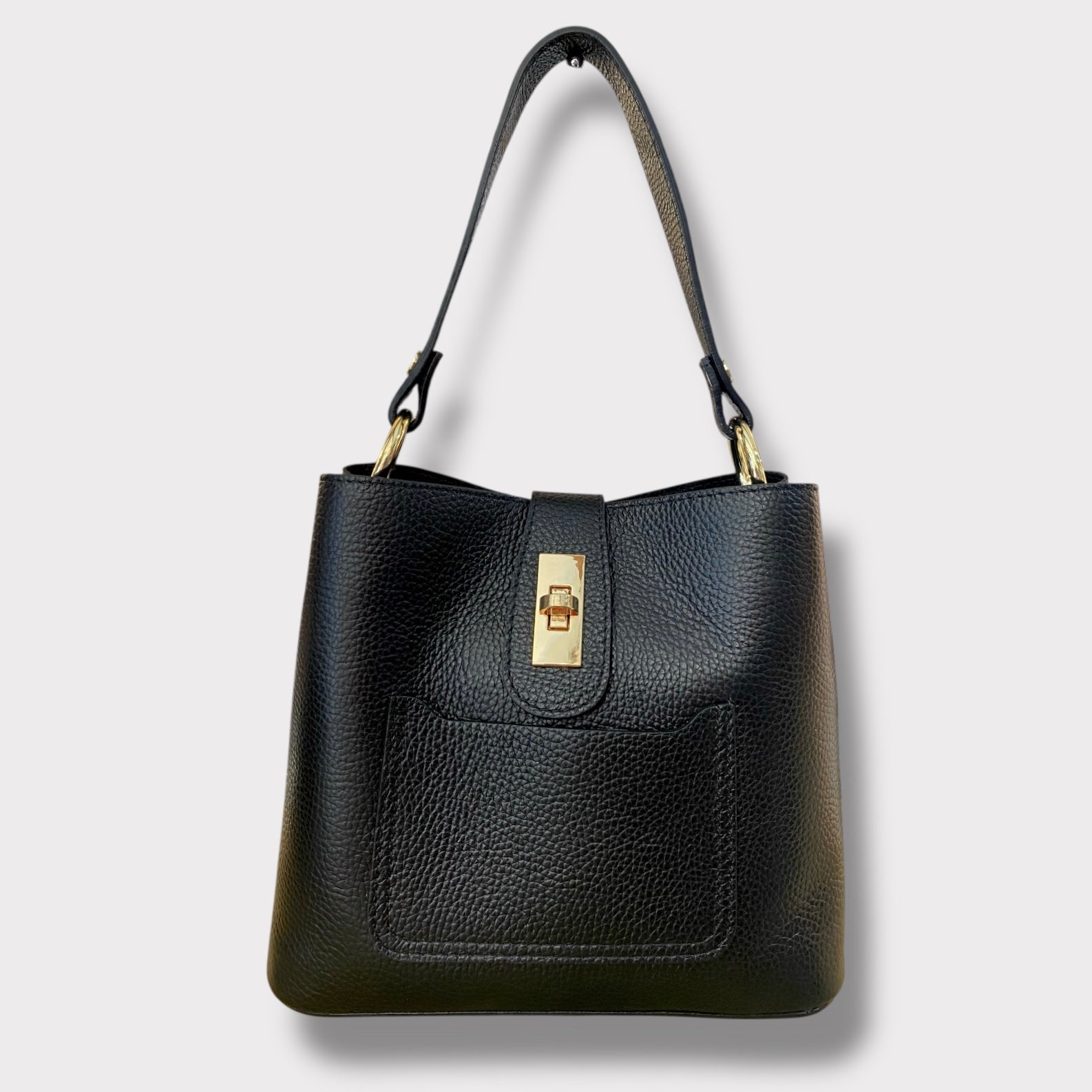 Si può portare a mano ed è completa di tracolla regolabile. Si chiude con fascia e con zip.
