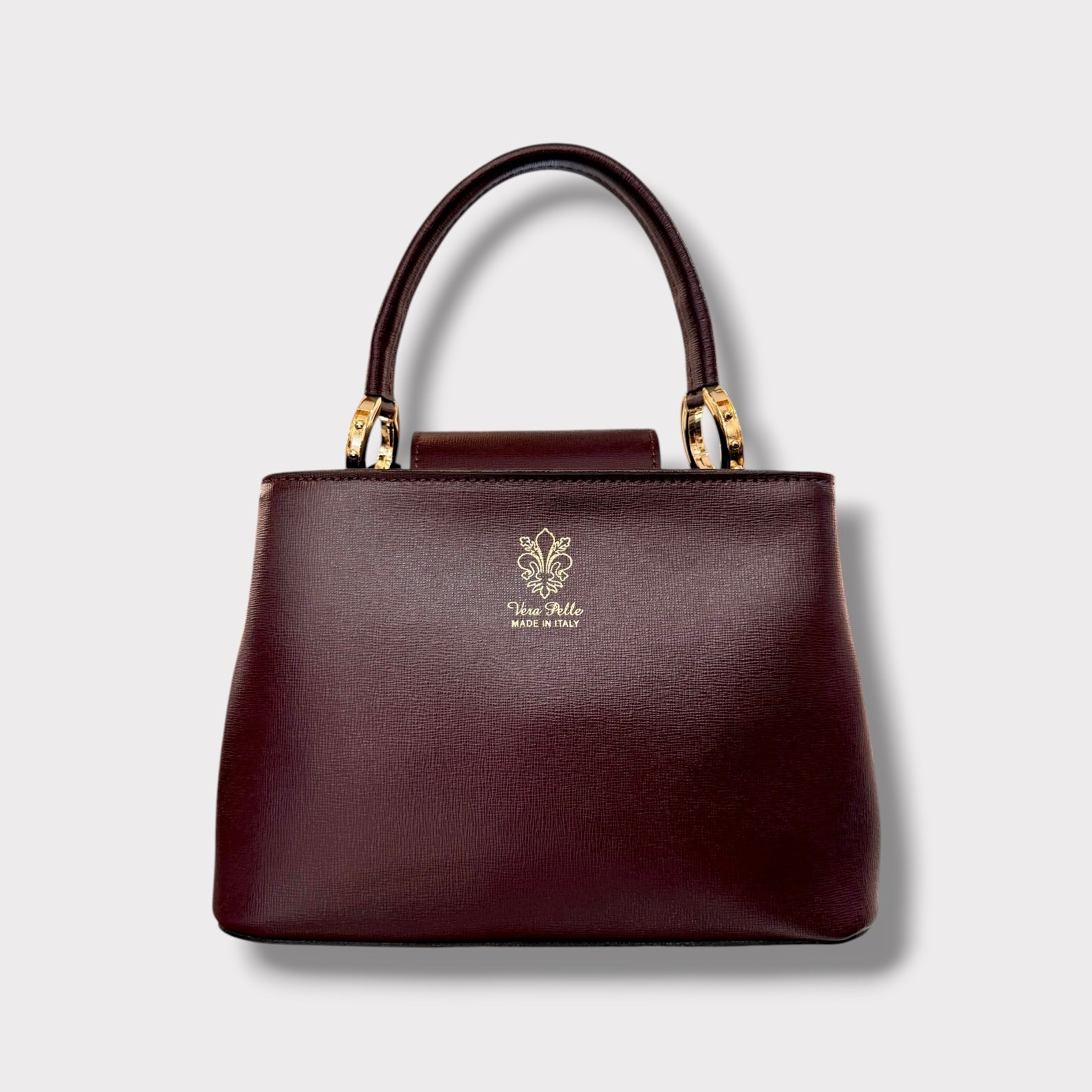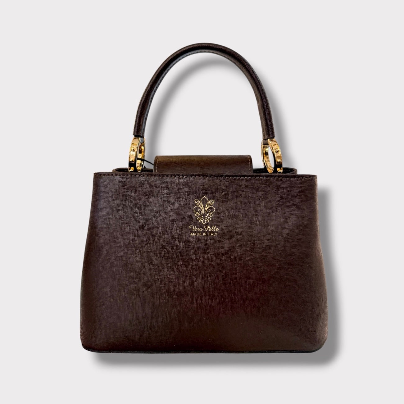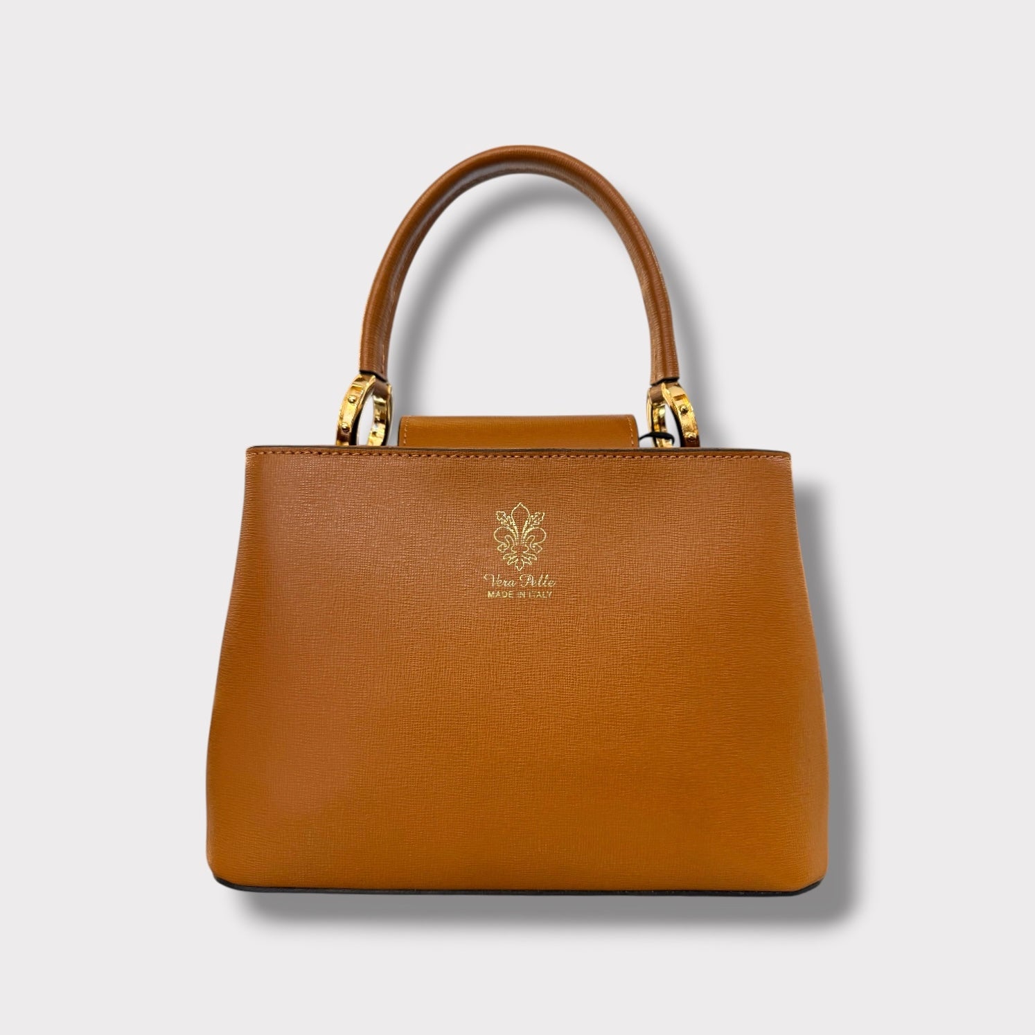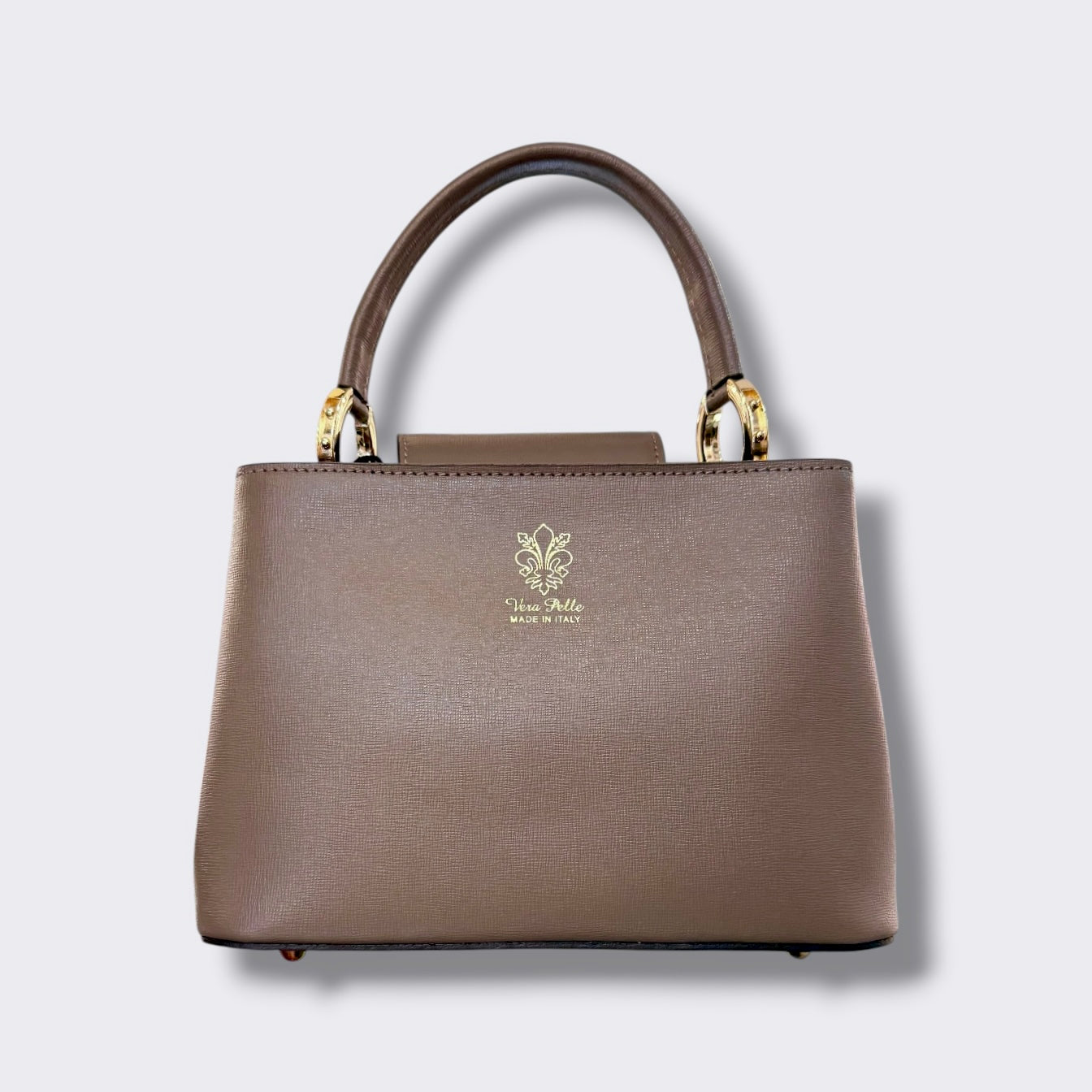 Borsa elegante realizzata in Vera pelle, stampa saffiano. Made in Italy. Dimensioni medio piccole.