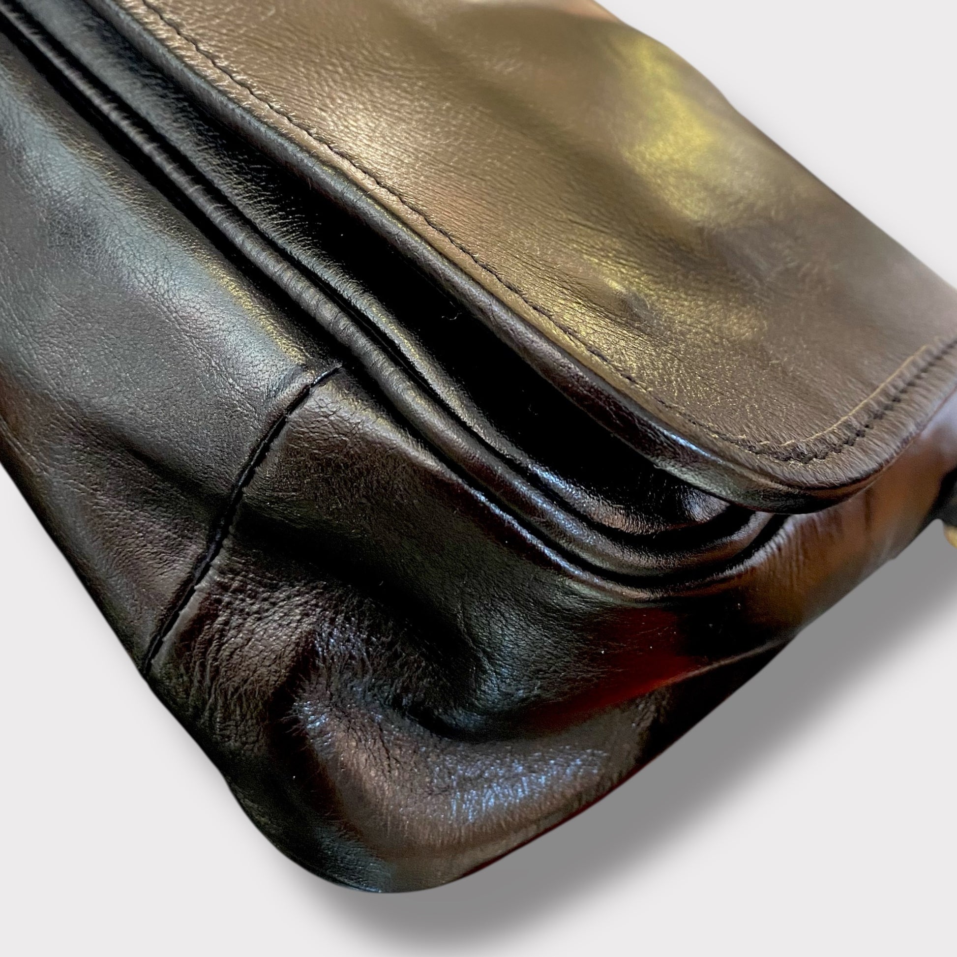 La borsa ha una tasca nella parte posteriore e la pattella, che arriva fino in fondo, chiude la borsa con due bottoni calamitati.